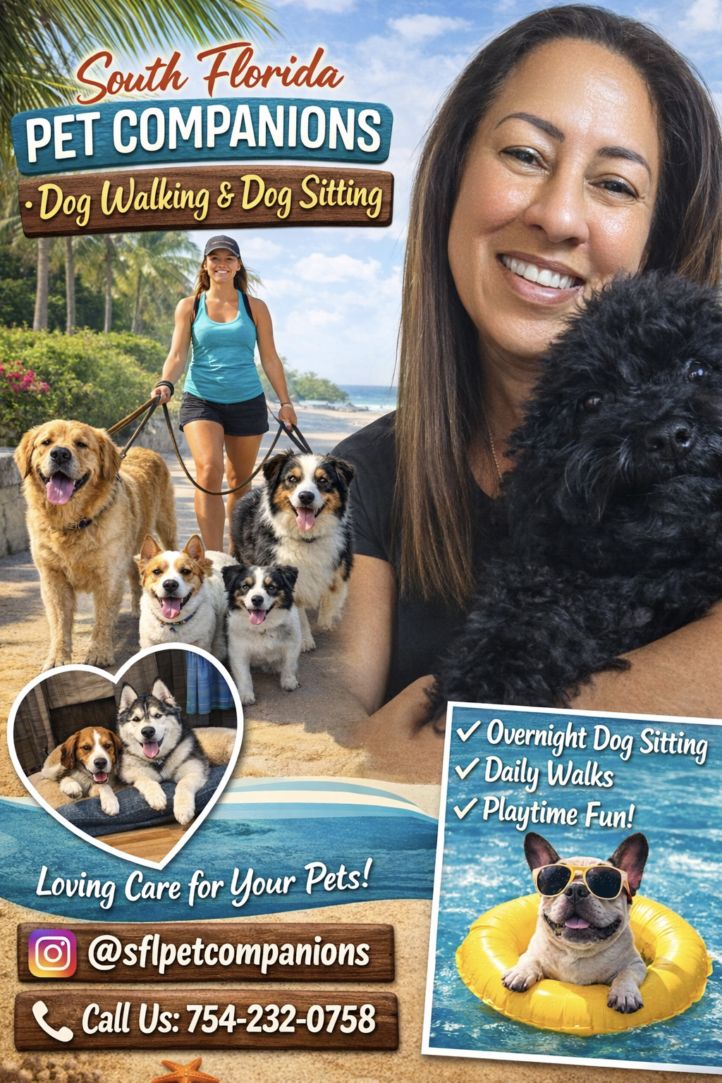South Florida Pet Companions began with one simple belief: pets deserve the same love, comfort, and consistency they get at home. What started as a small dream under the name Paws & Whiskers grew out of a lifelong passion for animals and a desire to bring dependable, heartfelt care to the community. It began with a handful of neighborhood walks, weekend pet visits, and a phone full of cute furry faces.