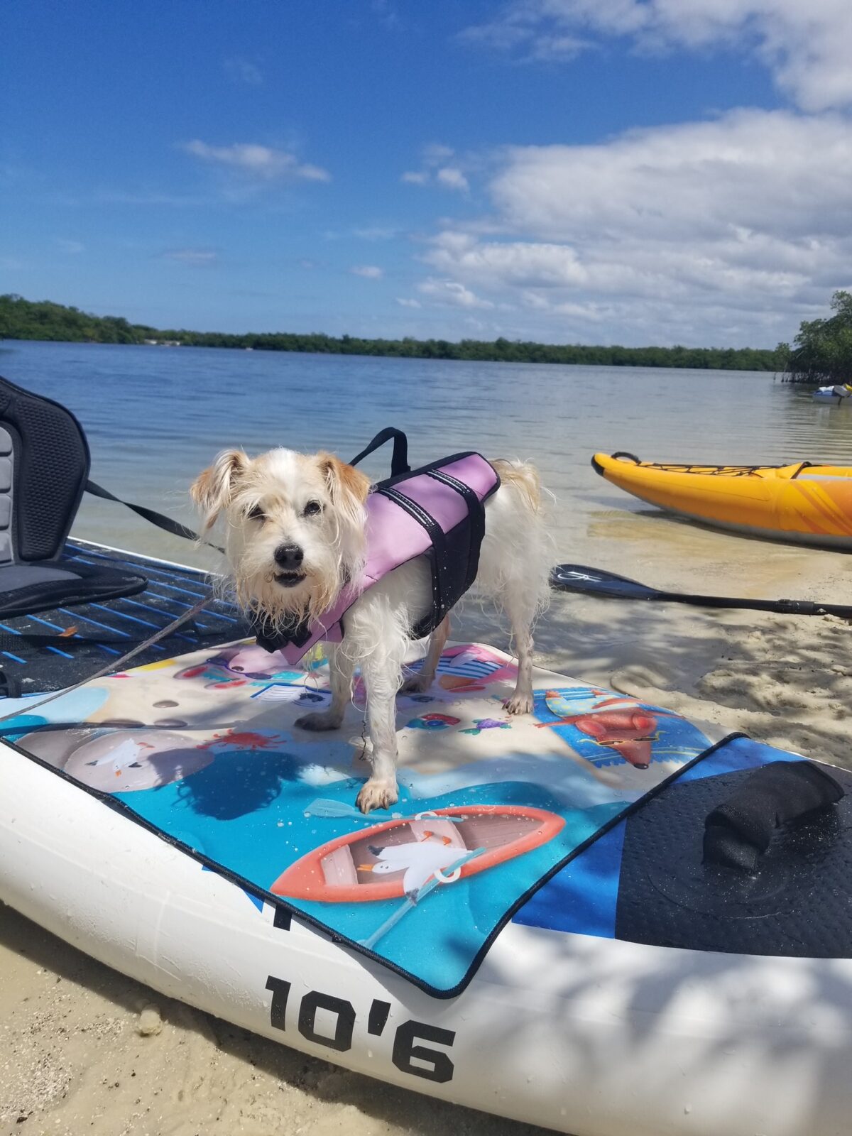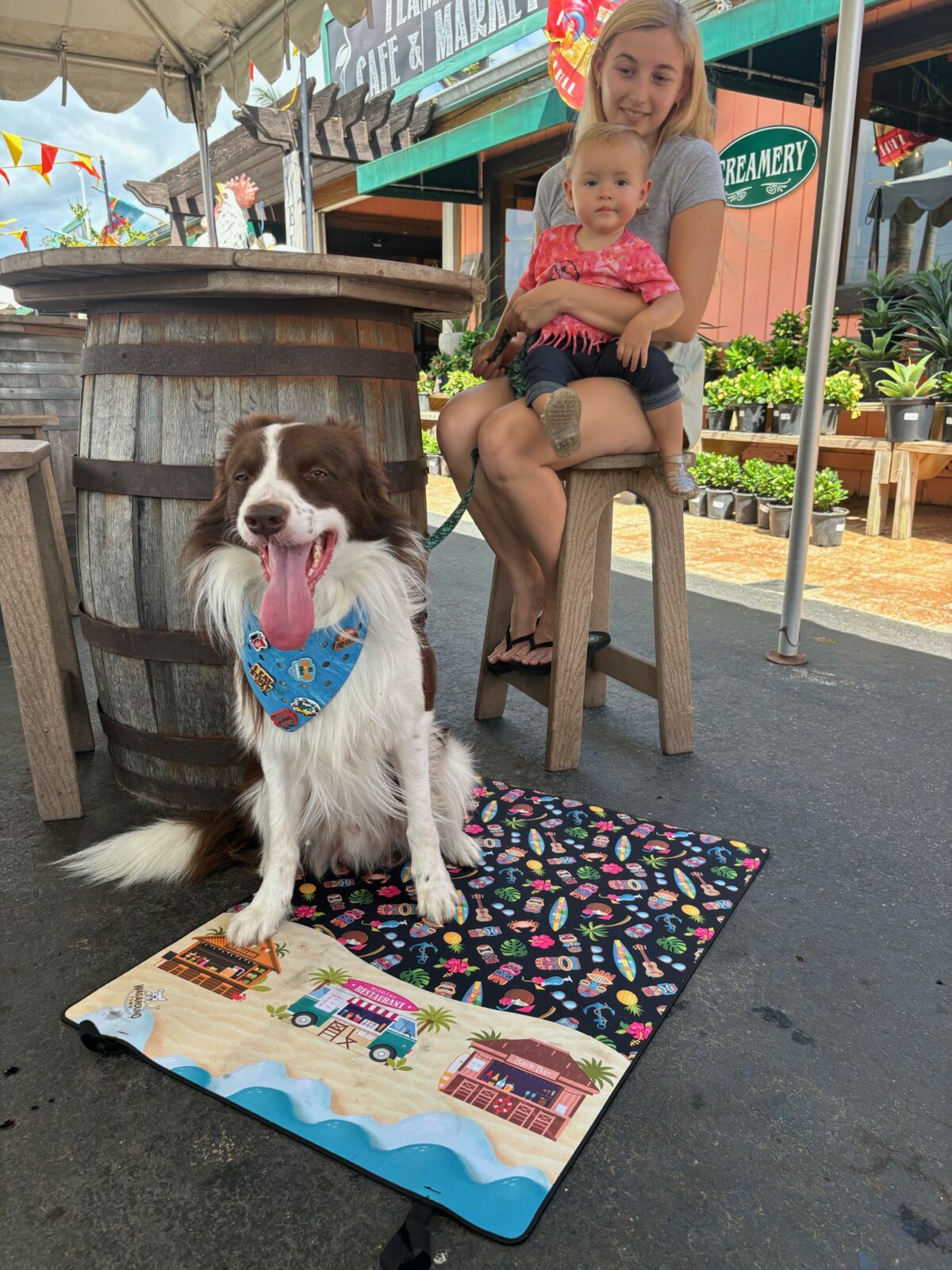 Our flagship product is the dog travel mat, a portable settle mat designed for life on the go. Whether you're hitting a dog-friendly restaurant, spending the day at the beach, out on the boat, or just keeping your car seat clean, our mats give your pup a designated spot wherever you land. We also carry a full line of mats for service dogs, working dogs, dogs in training, reactive dogs, therapy dogs, and dock divers.